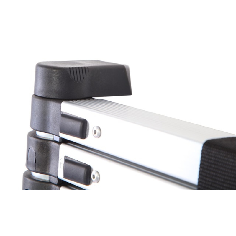Kopėčios yra itin kompaktiškos sandėliuojant ir transportuojant. Tvirtos guminės pagalvėlės užtikrina atsparumą dilimui ir suteikia tvirtą sukibimą su darbiniais paviršiais, nepaliekant įbrėžimų.