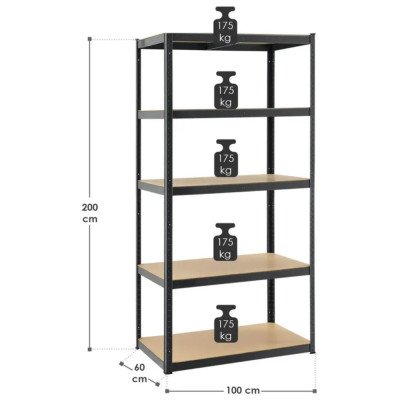 Sandėliavimo lentyna Basic 200 × 100 × 60 cm – praktiškas ir patikimas sprendimas rūsiui, garažui, dirbtuvėms ar sandėliui. Pagaminta iš cinkuoto metalo, ši sunkioms apkrovoms skirta lentyna užtikrina ilgaamžiškumą, stabilumą ir tvarką jūsų erdvėje.