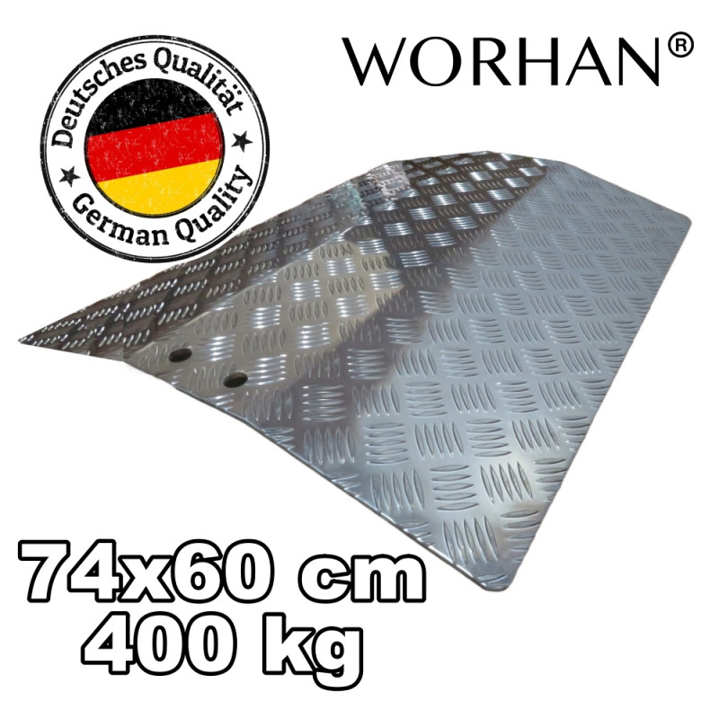 Patvari ir didelį svorį atlaikanti rampa turi apsaugas, kurios neleis subraižyti arba kitaip sugadinti grindų. Šis gaminys pagamintas iš aukštos kokybės anoduoto aliuminio ir atitinka EN-131 ir CE standartus, o tai užtikrina tvirtumą ir ilgaamžiškumą.