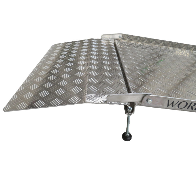 Patvari ir didelį svorį atlaikanti rampa turi apsaugas, kurios neleis subraižyti arba kitaip sugadinti grindų. Šis gaminys pagamintas iš aukštos kokybės anoduoto aliuminio ir atitinka EN-131 ir CE standartus, o tai užtikrina tvirtumą ir ilgaamžiškumą.